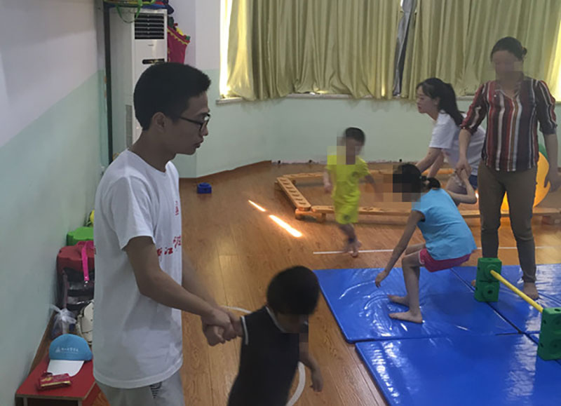 经过早上半天的专业培训,志愿者们开始了为期4天的暑期实践活动。“绿色啄木鸟”志愿者辅助“星儿们”上课。音乐教室、社交教室、认知教室、精细教室都可以看到志愿者们忙碌的身影。此次暑期实践活动志愿者们辅助小朋友们上课,让家长们得到了一个喘息和放松的机会,这也给老师们减轻了一定的工作量。