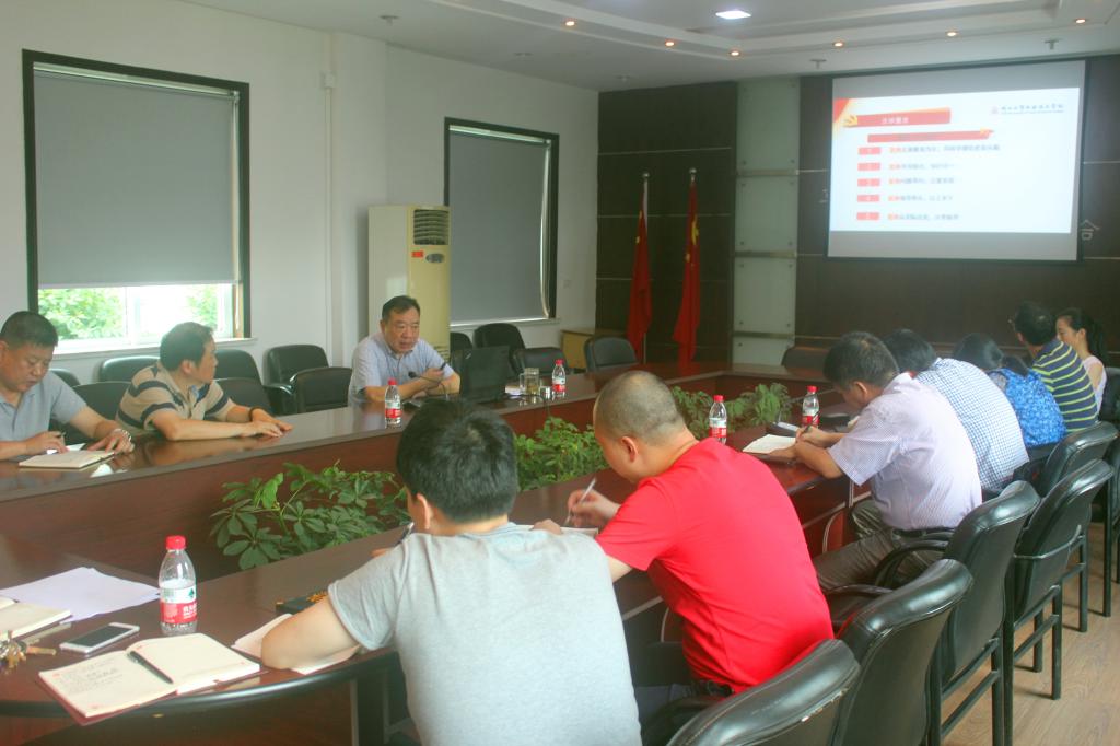 2016年7月8日下午,学院党委书记盖庆武在行政楼1号会议室为成教学院党支部全体教职工党员讲授以“学党章党规,做合格党员”为主题的专题党课。党课由成教学院党支部书记徐登喜主持,成教学院中层以上领导干部以及全体教职工党员参加党课。