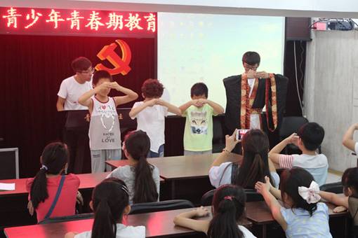 7月11日上午,浙工贸电子系 “孝益心”新青年下乡服务队携温州市南汇街道春秋社区,开展以“执幼子之手,行孝悌之礼”的传统文化活动,活动吸引了近百名孩子和家长参加。