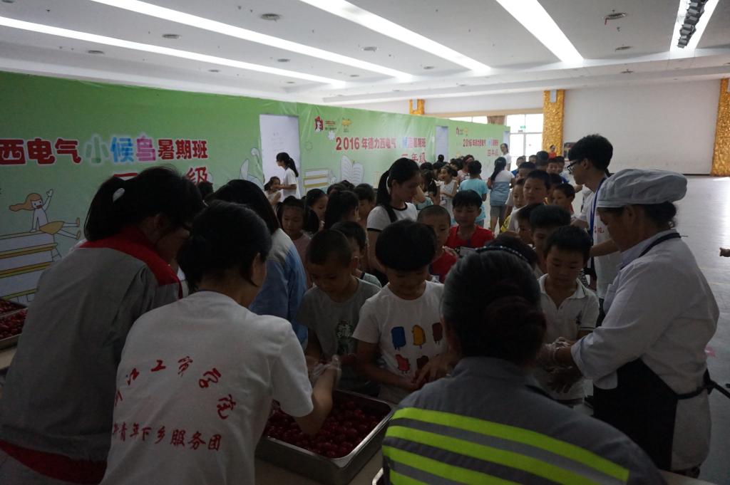 中午,孩子们欢快的将队伍整齐的排列起来,有序的领取自己的饭菜,小心翼翼的走回教室,生怕自己的饭菜倒在地上。孩子们知道了每一份饭菜都是农民伯伯辛苦的劳动成果,不能轻易的浪费。每天中午打饭,每天下午点心分发时间,都有一个小朋友们熟悉又陌生的身影——志愿者。这是德力西公司自己组织的员工志愿者,他们可能是车间工人,可能是有空的党建领导,但他们都是德力西本身自己的员工,他们认识孩子,喜欢孩子,甚至有些都能够叫的出大部分孩子的姓名。在自己有空且孩子们需要帮助的时候,他们也会出现在孩子们的身边,帮助我们完成工作。
