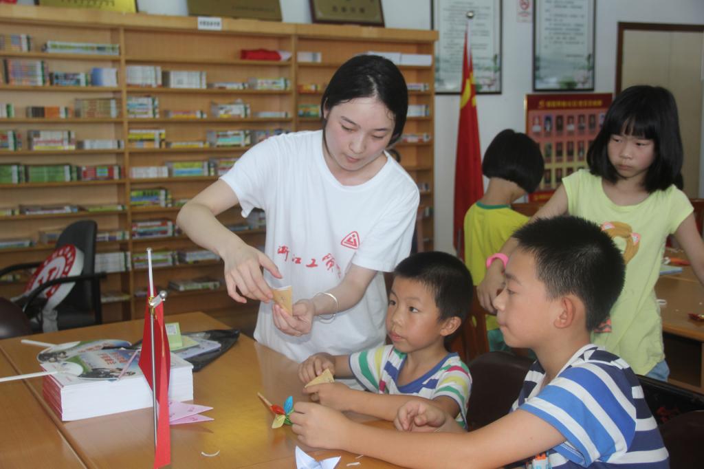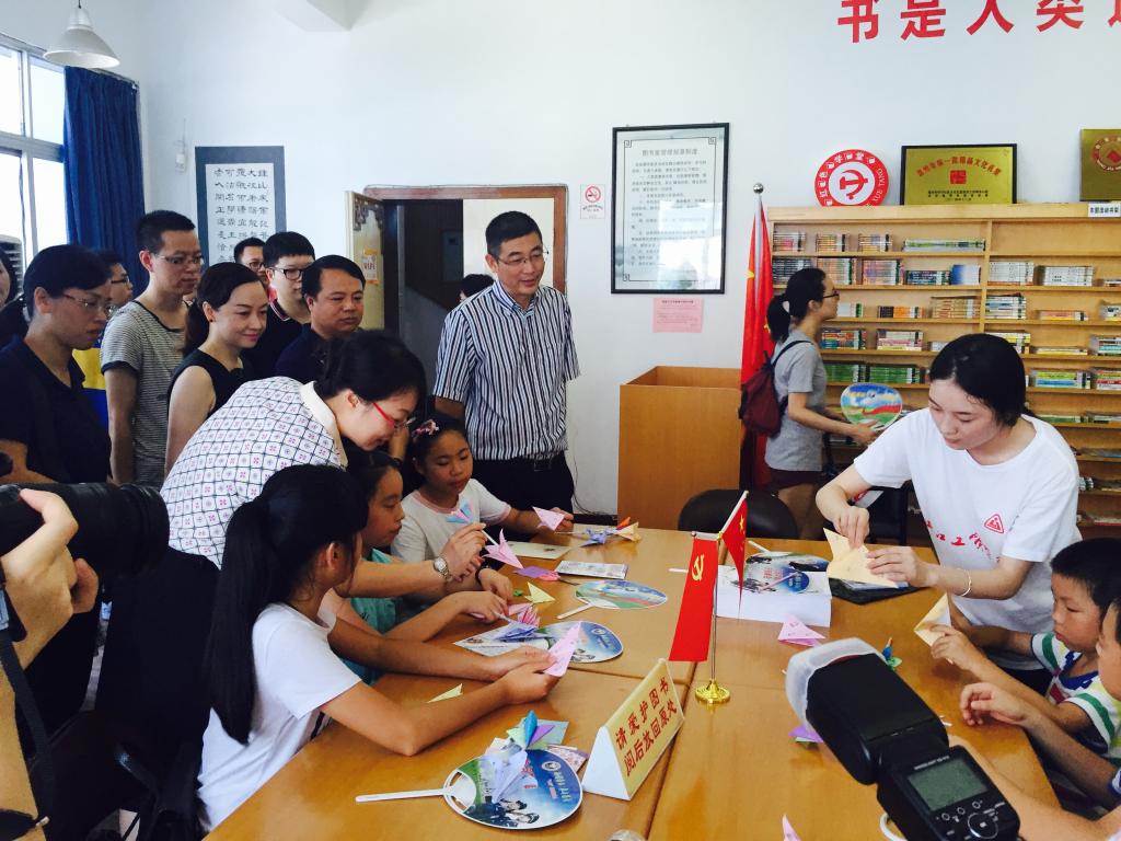 在服务队活动现场,我院瓯绣文化传承“新青年下乡”服务队的同学正在教当地小朋友瓯绣传统技艺,胡副部长高度认可我院在温州地方非遗文化传承方面做出的贡献,他认为在暑期“新青年下乡”服务中开展瓯绣文化传承实践活动,既可以让更多的人认识非遗,传播非遗,同时在穿针引线之间还可以锻炼小朋友的意志品格。在二楼,我院根号“新青年下乡”服务队的10名队员给现场30多名小朋友带去了折纸艺术、汉字拼写、趣味体育等课程,受到了当地小朋友的欢迎。走访期间,胡副部长详细询问了我院今年暑期“新青年下乡”服务队队员所学专业、活动时间、活动内容等情况,胡副部长对我院“新青年下乡”活动印象深刻,认为我院活动紧密围绕市委市政府工作部署和要求,紧密结合地方老百姓生产生活需求,活动特色明显,成效显著。