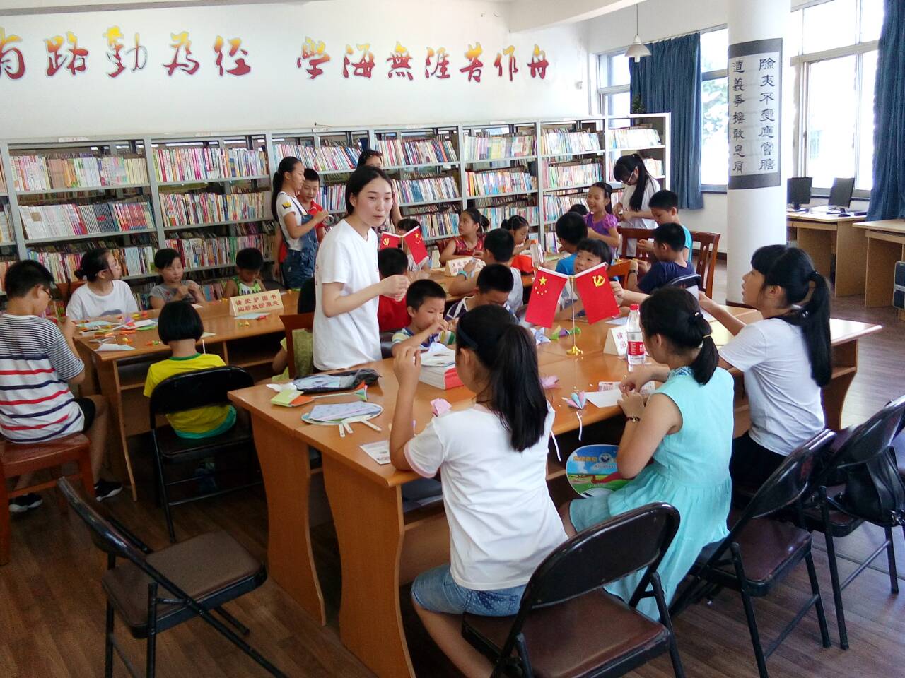 志愿者们指导小朋友折纸