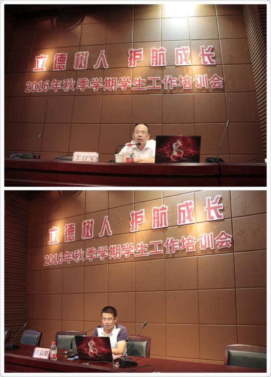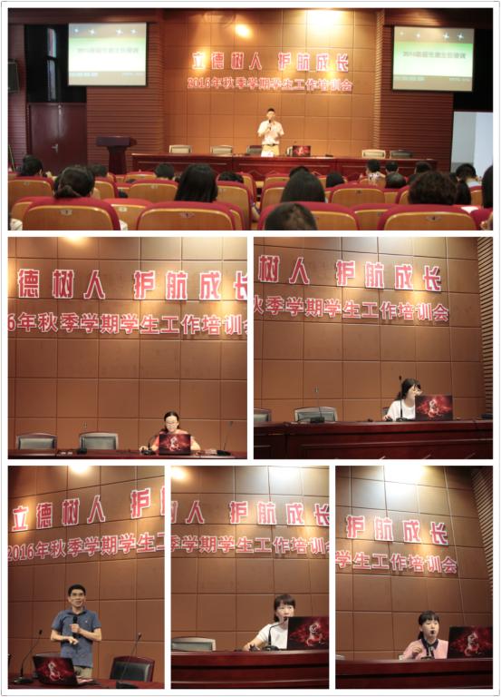 以“立德树人,护航成长”为主题的2016年秋季学期学生工作培训会于9月8日在学术报告厅举行,会议分上下午两场进行。上午主要面向今年的新生班主任开展培训;下午面向学院全体学生工作人员开展马克思宗教观、学生事务管理和心理辅导等内容教育,旨在通过针对性的经验交流,梳理工作思路,把握新学期思政工作重点,完善学生思政工作方式方法,为2016年迎新、入学教育和班集体建设等学生工作的顺利开展做好充分准备。