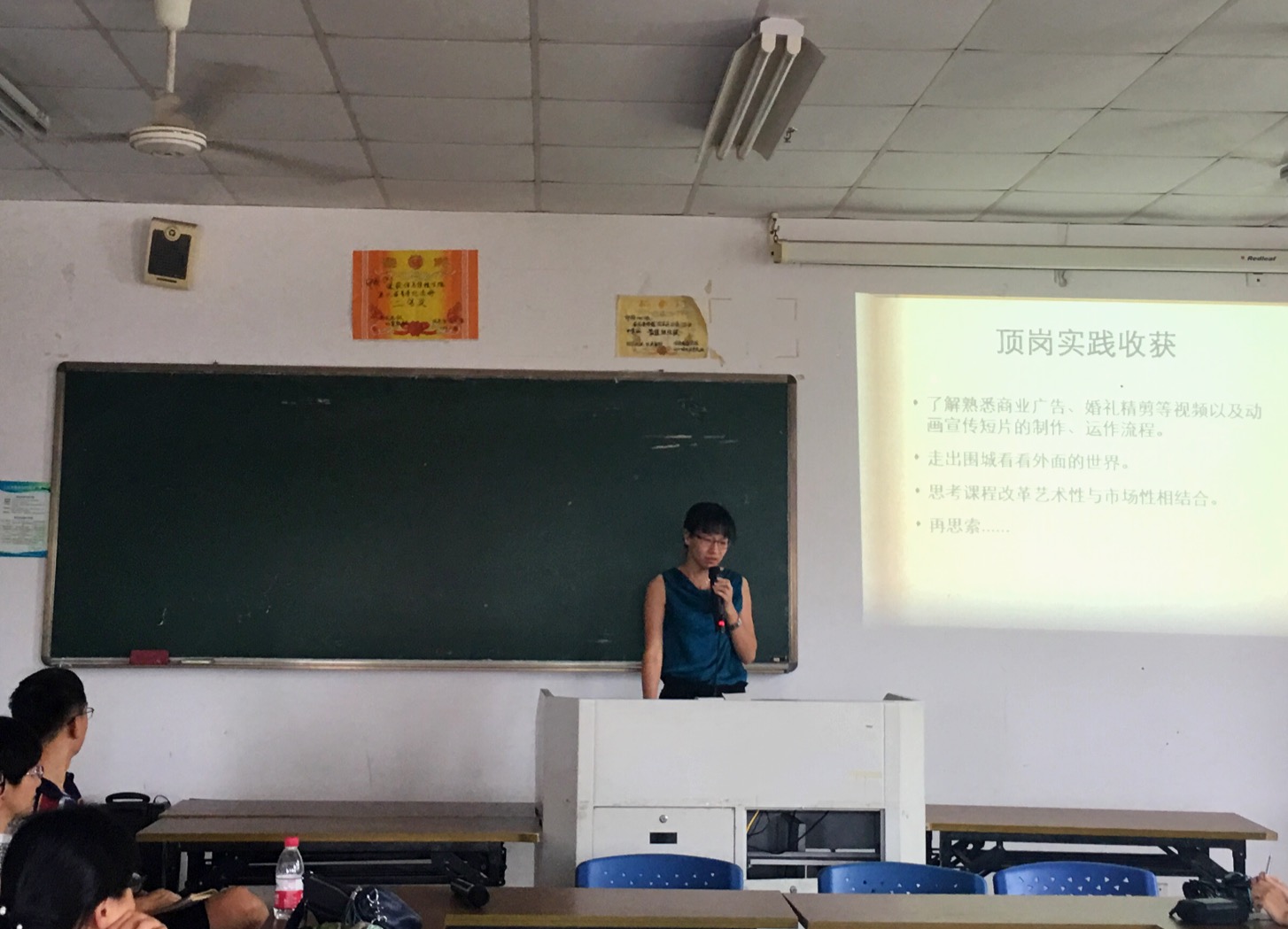 首先,潘晶晶、杨林两位老师代表暑期下企业实践的六位老师进行了汇报总结。两位老师从实习单位的选择,实习单位介绍、实习内容及实习收获四方面进行了介绍,他们表示教师下企业实践是一件非常有意义的事情,可以让老师走出“围城”看外面的世界,开阔了思路和视野,提高了理论联系实际、解决问题的能力,可以更好的思考课程改革艺术性与市场性相结合,从而将实习中学到的运用到教学中。