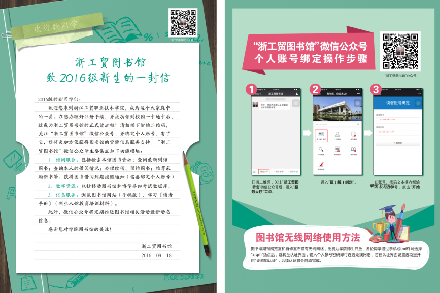 两天来,许多新生、老生以及教职工来到服务处咨询图书馆相关各类问题,了解图书馆推出的新服务项目。100多名新生在馆员老师指导下现场关注了“浙工贸图书馆”公众号,并学习图书馆公众号相关服务模块应用。新生入馆咨询服务活动得到了学院新老学生和老师们的一致肯定和好评。