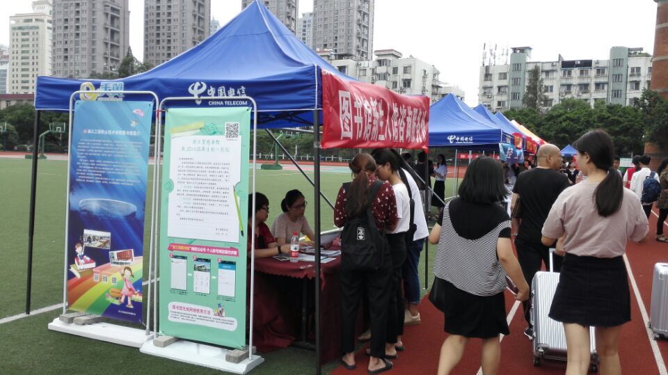 为更好地让2016级新生认识了解学院图书馆基本情况及新开展的服务项目,9月18日、19日新生报道期间,图书馆组织馆员及勤工俭学学生在学院新生报到现场专门设立了新生入馆咨询服务处,为新生提供入馆咨询及图书馆相关服务项目宣传推广工作,并为每位新生发放了《浙工贸图书馆致2016级新生的一封信》。同时,现场开展图书馆新生勤工俭学招聘活动,为有意向从事图书馆勤工俭学的新生第一时间提供招聘信息。