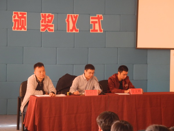 段文林老师宣读奖学金、三好学生、优秀干部表彰文件。随后,程树存老师和段文林老师共同为洪婷婷等9名三好学生、杨顺顺等45名优秀干部及陈栩如等129名奖学金荣获得者颁奖。