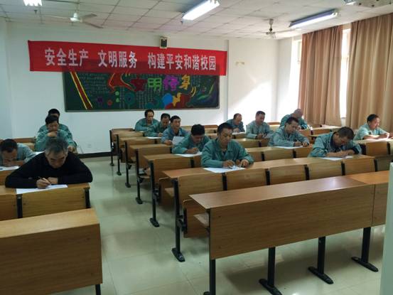 5、开展一次安全知识竞赛。为加强后勤员工的安全理论知识及常识了解,提升员工安全生产文明服务意识,11月4日下午总务处组织全体维修工在6213教室开展安全生产、文明服务理论知识竞赛,确保人人懂安全,守安全。