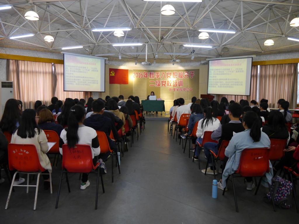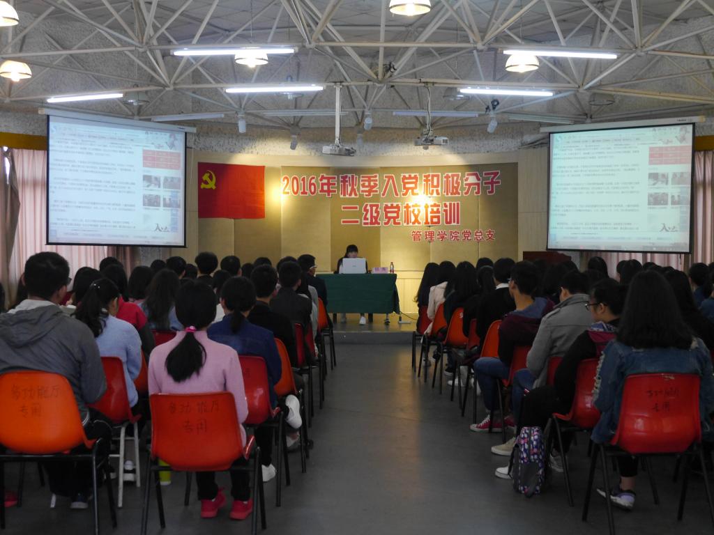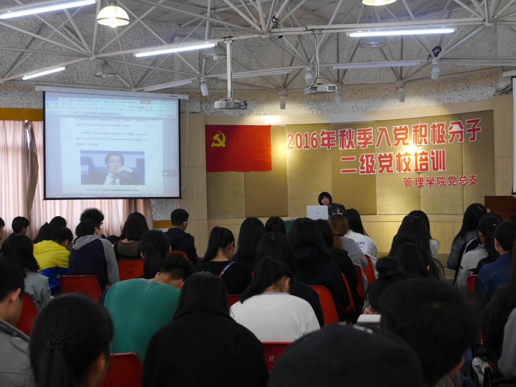2016年11月13日,管理学院学生党支部在多功能教室举办2016年秋季学期业余党校入党积极分子培训班。参加本次培训的对象为新推入党积极分子。