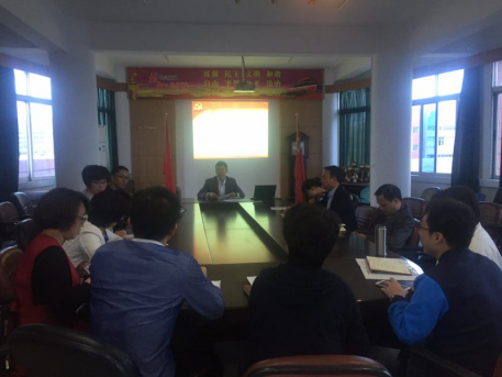 项老师首先传达了学院党委书记盖庆武老师在全体中层干部会议上就学习、宣传、贯彻十八届六中全会精神所做的二方面的工作部署:一是坚持从严治党,做好十八届六中全会精神的学习、宣传、贯彻落实工作;二是深化“两学一做”学习教育,统筹兼顾各项工作有序开展。