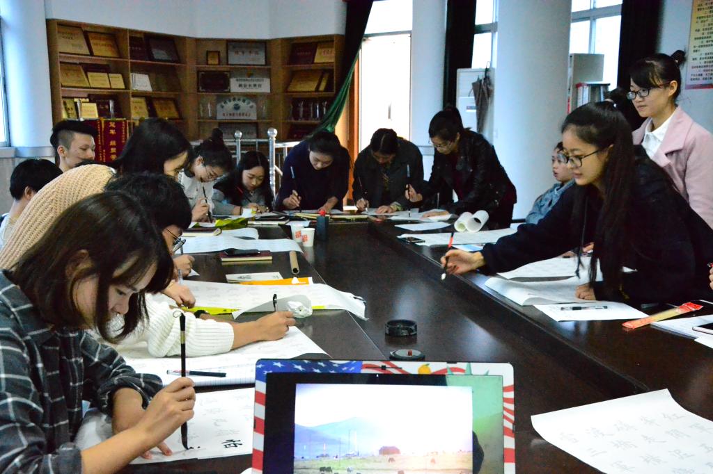 学生们临摹《七律 长征》字帖