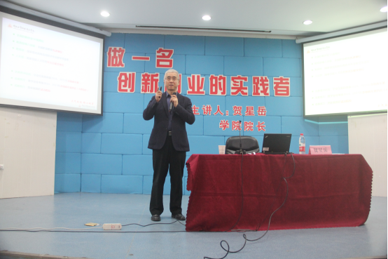 为了深入学习贯彻党的十八大系列全会和群团工作会议精神,推进“大众创业、万众创新”,提高我院团学干部的政治素养和创新创业意识。2016年11月28日晚,学院院长、党委副书记贺星岳教授在阶梯教室为2016年秋季学期团学干部培训班授课。
