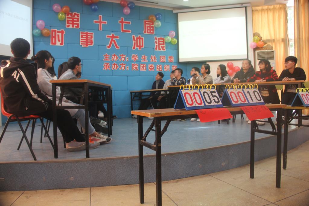 为提高我院学生的时政关注力,更加关注和了解社会时事,12月3日,由学生处(团委)主办、院团委组织部承办的第十七届时事大冲浪活动在阶梯教室举行。朱余洁老师担任活动嘉宾,各分院系组成代表队参加。