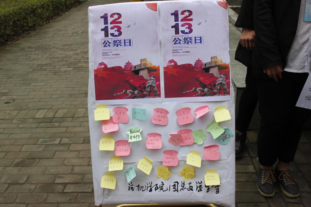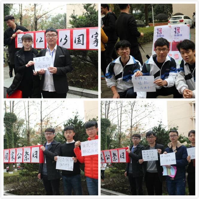 为了让大学生能铭记12·13国家公祭日,唤起学生们奋发图强的热血情怀,2016年12月13日中午,汽机学院团总支学生会在6号教学楼前举行“我想对12.13国家公祭日说”的倡议活动。