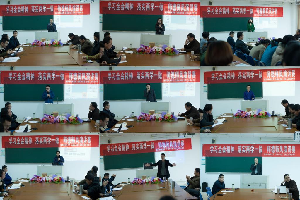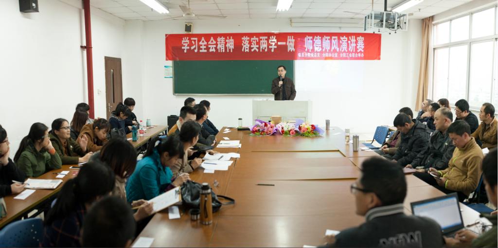 为弘扬新时代青年教师的良好师德师风,倡导健康向上的精神风貌,培养四有教师,信息与传媒学院党总支、办公室和工会于2016年12月14日联合举办“学习全会精神、落实两学一做、师德师风演讲赛”,参赛者由信息与传媒学院下属的各教研室和办公室选派,不参赛的其他老师全部作为评委,既提高了评分的公正性,也增加了相互学习的效率。