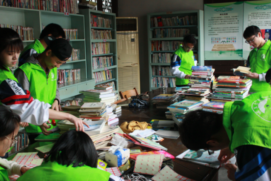 虽然图书的整理和归类工作繁琐单一,但是志愿者和入党积极分子们都很享受这份有意义的活动,因为大家都知道,我们所做的志愿服务活动能帮助村民们汲取知识,能带给村民们欢乐。