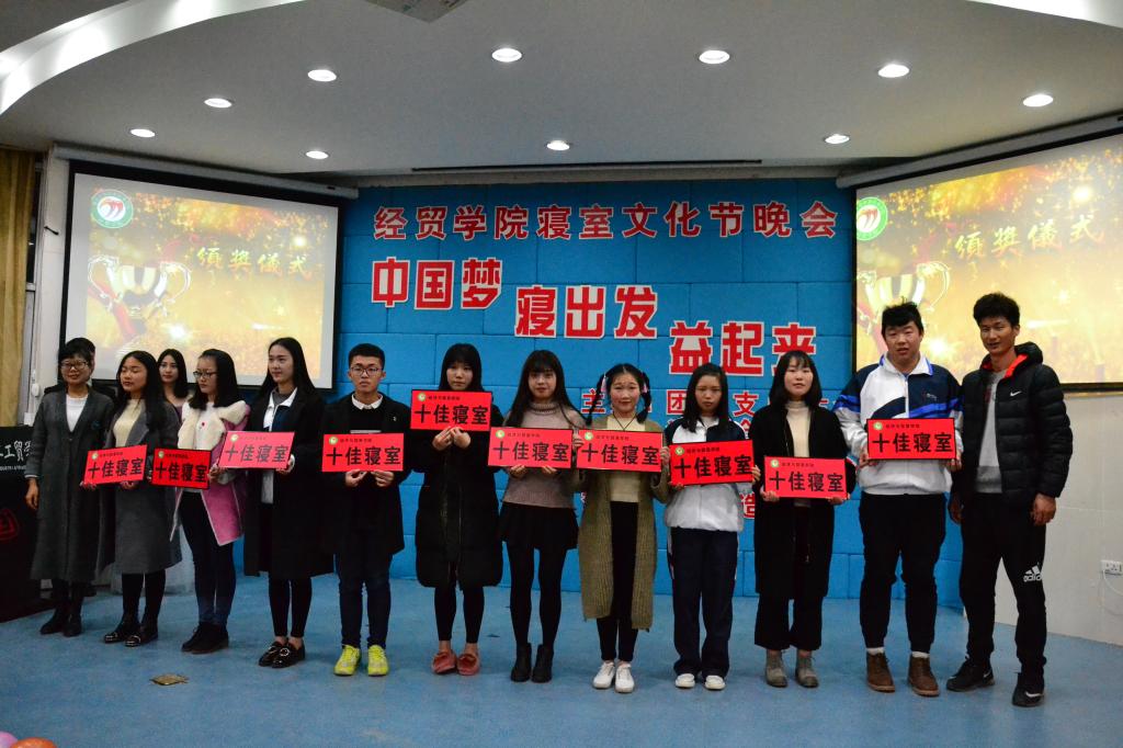 各寝室成员群策群力、集思广益,为晚会送上各类节目,歌舞青春,张扬活力。歌曲串烧,玩转各种音域;劲歌热舞,释放青春活力;《我们的青春》等大合唱曲目,展现寝室成员串联在一起的友谊,相互依赖,一个都不能少;《西游记后传》、《招亲大会》等小品,搞笑、幽默,是寝室成员创新和创能潜力的爆发,更是成员间默契配合的秀场;《青春永驻》等朗诵节目,深情款款,是寝室小伙伴真情的流露,字里行间见真心厚谊……最终,E929等十个寝室荣获经贸学院2016年度“十佳寝室”荣誉称号。