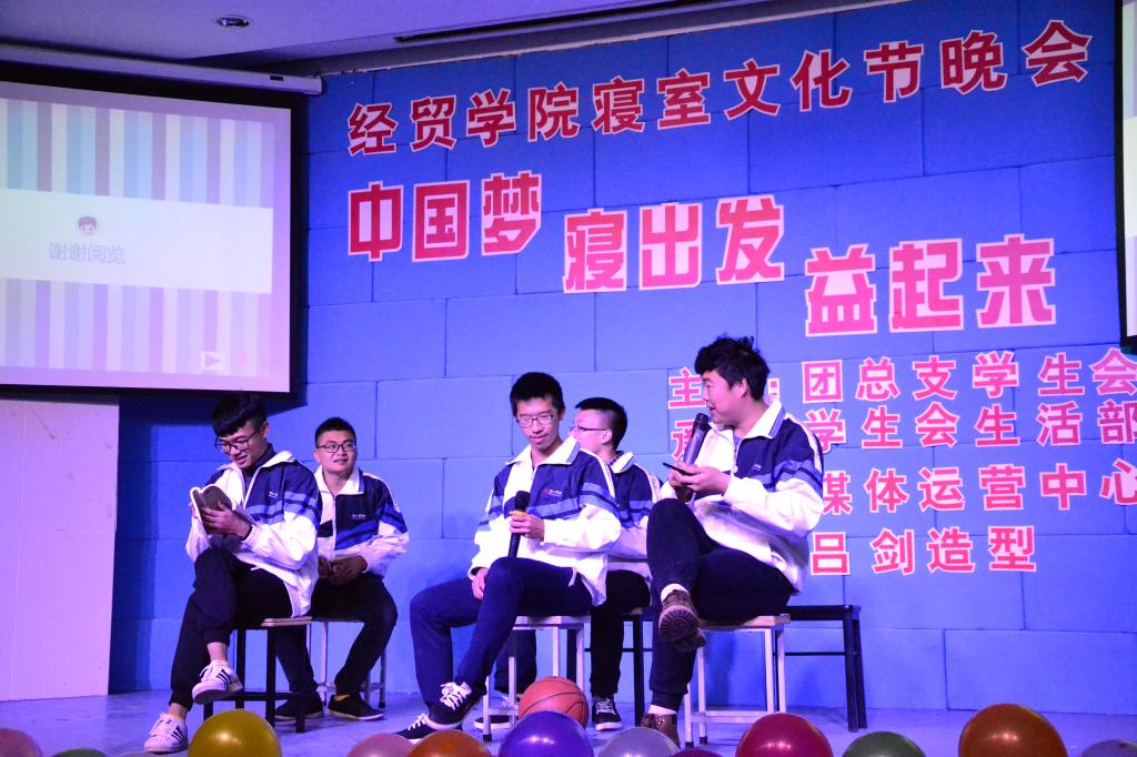 12月27日,经贸分院“中国梦 寝出发 益起来”寝室文化节汇报晚会在阶梯教室拉开帷幕。经贸分院党总支书记张勰,辅导员向政,团总支书记高莎出席并担任评委。