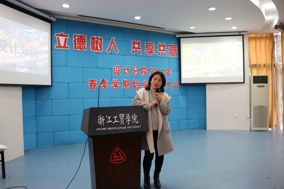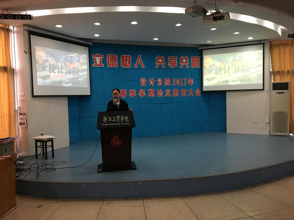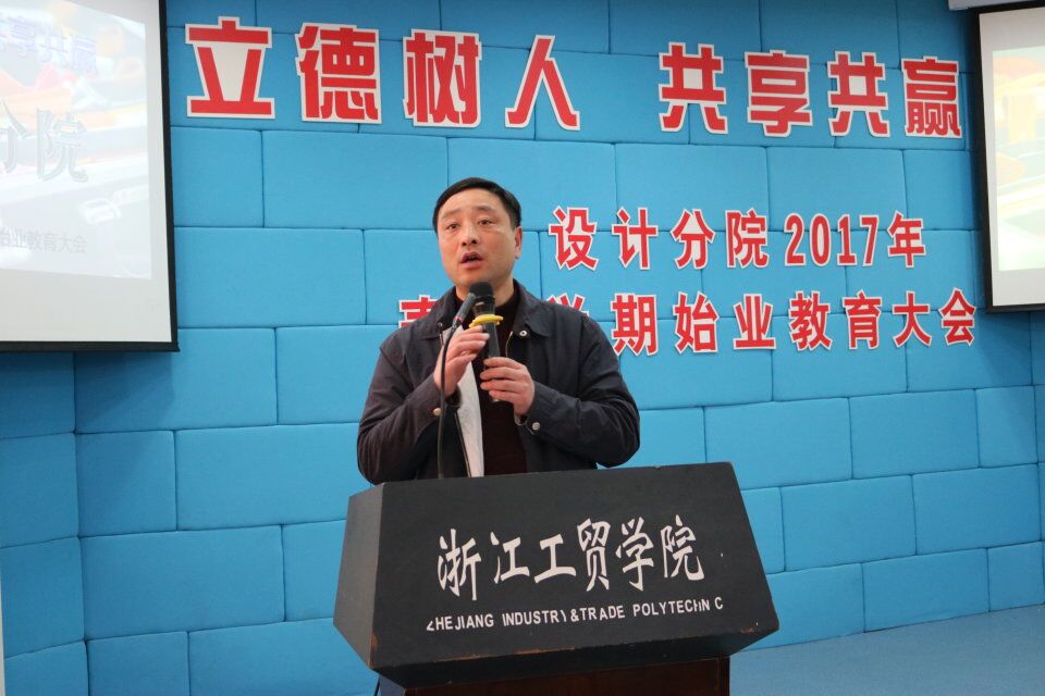 2017年2月18日上午8点30分,设计分院2017年春季学期始业教育大会在阶梯教室正式召开。设计分院书记杨松涛,鞋类教研室主任鹿雷,眼视光教研室主任易际磐,工业设计教研室主任吕长征,艺术设计教研室主任许衍军,知识产权管理教研室主任王秋红,设计分院辅导员陈剑和张婷以及班主任老师出席了本次大会。设计分院始业教育大会分为16级、15级两场举行。据悉,本次大会是原轻工系与温州知识产权学院师生经学院战略调整成立设计分院后第一次齐聚一堂,对于同学与老师来说都意义非凡。