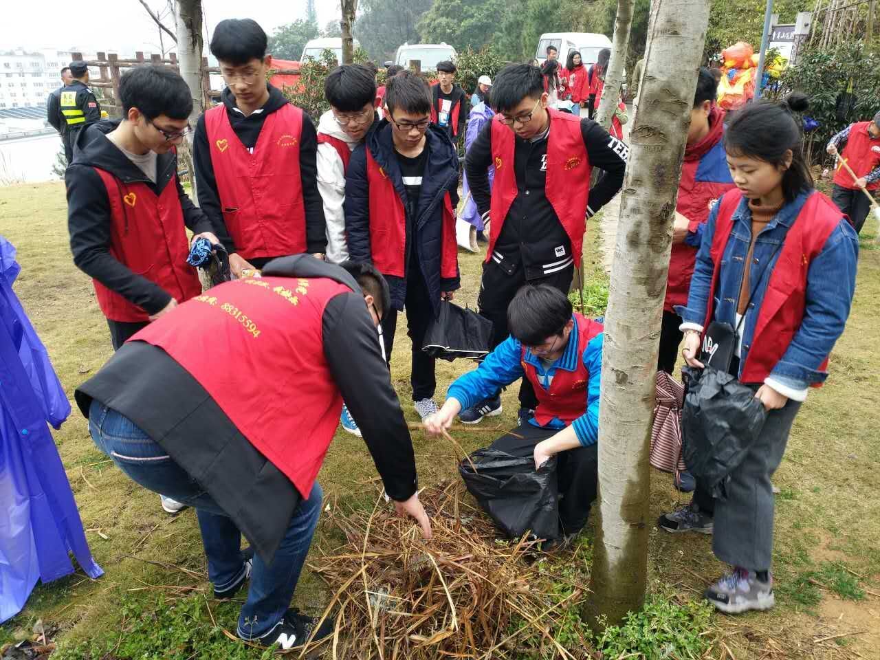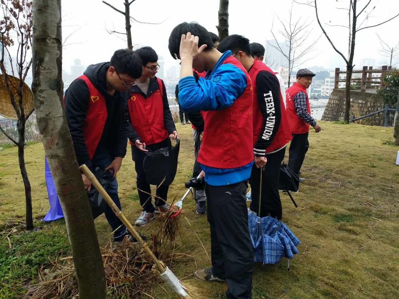 3月12日上午,我院25名红马甲志愿者在杨府山公园进行了以“护一棵小树,净一方绿土”为主题的爱护树木的志愿活动,向市民传达“爱护树木,保护环境”的生态理念。