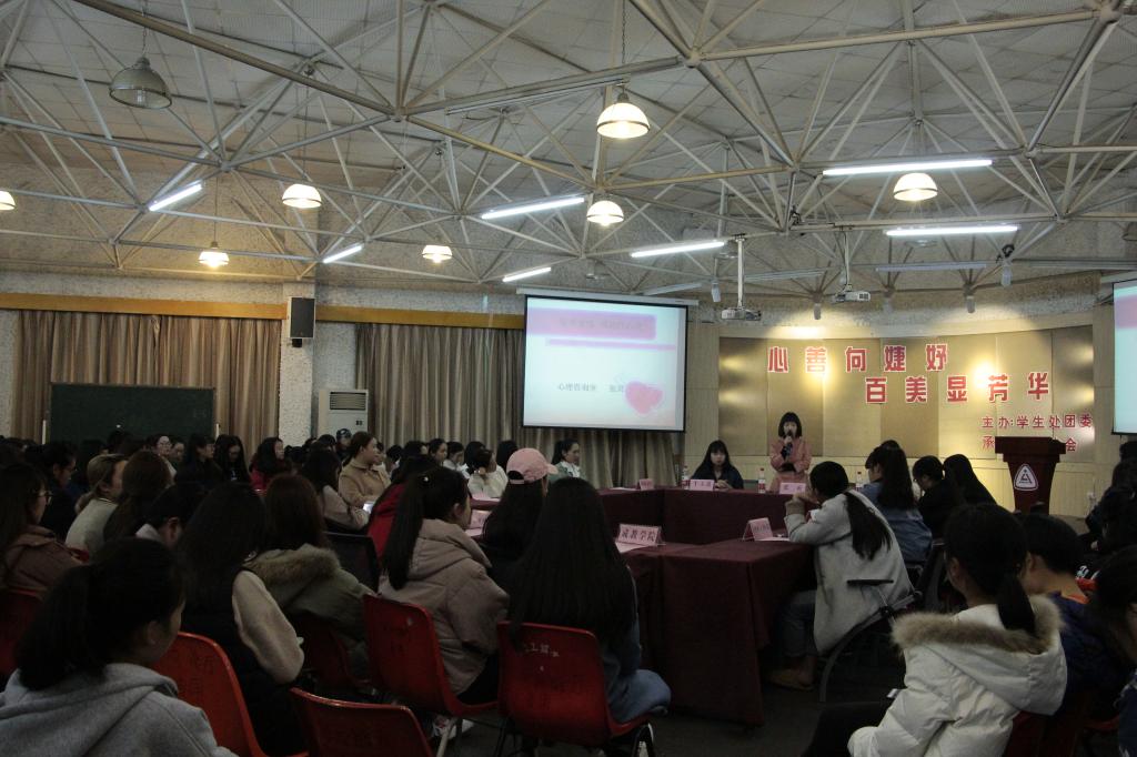 为了提倡女生自尊、自信、自强、自立的品格,2017年3月9日在多功能厅举行了以“心善向婕妤百美显芳华”为主题的女生节座谈会。本次座谈会由学生处(团委)主办、校学生会承办,并邀请到心理咨询室张页老师出席与各院系、各学生组织的女生代表畅谈女性健康话题。