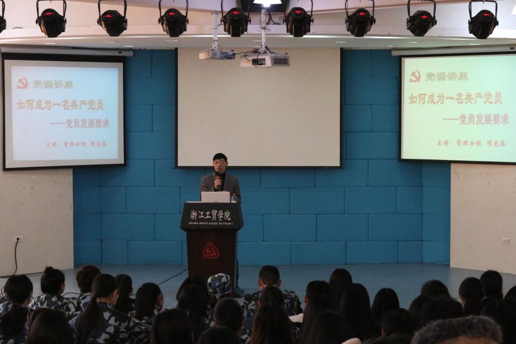 项老师以“如何成为一名共产党员”为主题,从发展党员工作面临的新形势和新任务、大学生如何端正入党动机、自觉接受党组织的培养和考察等三个方面为入党积极分子上党课。