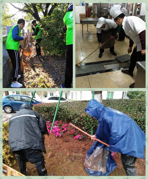 学校环境建设,总务处承担着谋划责任。在开展环境卫生大整治活动中,总务处积极与当前各项工作有效结合,起到了事半功倍效果。一是校园环境卫生整治过程与校园绿化、美化建设活动相结合。3月时值植树最佳时节,总务处积极开展绿化种植、绿化补苗、绿化修剪活动,增添了绿色,丰富了色彩,扮靓了校园。二是校园环境卫生整治过程与主题实践活动相结合。与汽机分院绿色啄木鸟志愿服务队协同开展绿化带垃圾、杂草清理活动。丰富了学生活动,养成了爱护环境,爱护卫生意识。三是与学院工会庆祝“三八”妇女节活动相结合,办公室增添了绿色,美化了环境,营造了氛围。四是与春季传染病防控活动相集合,春季是传染病高发期,学校积极开展卫生清洁,卫生死角盲点清洁整治活动,有效预防病毒、细菌滋生。