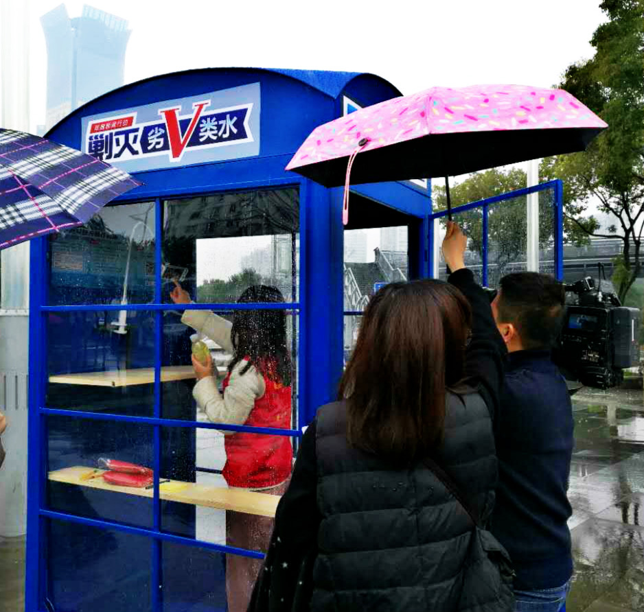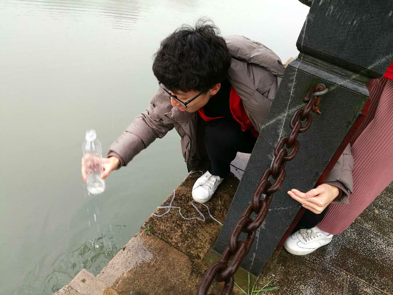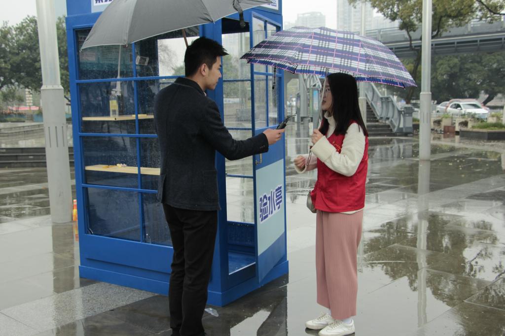 活动在上午10点正式开始,虽然天公不作美,一直阴雨绵绵,但却丝毫没有影响志愿活动的开展。同学们现场采集水样,放置到验水亭,进行水质检测。同时,向现场的市民普及如何治水、护水知识,宣读剿灭劣Ⅴ类水倡议书,宣传“五水共治”和“世界水日”等知识。针对如何更好地参与五水共治活动,志愿者提出了自己的意见和建议。比如,沿河设立更多的“河长信箱”设施,便于群众及时向河长反应突发的河道情况,河长也能将自己的巡河日志供群众翻阅,相互监督与鼓励。