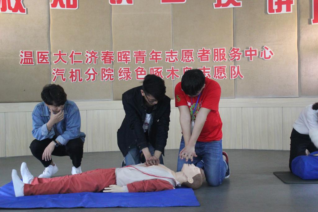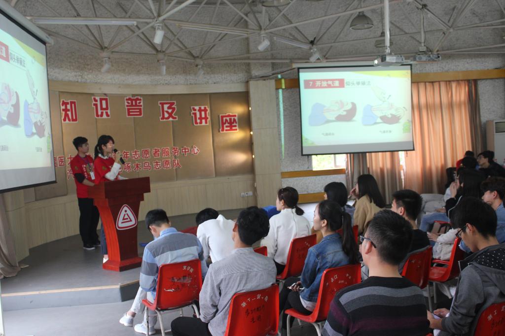 随着天气逐渐转暖,大家的户外运动量逐渐变多,为了减小意外受伤带来的人身伤害,增强大家在危急时刻的自救能力,2017年4月9日下午,浙江工贸职业技术学院绿色啄木鸟志愿队特邀温州医科大学春晖急救部志愿队来到学校为同学们开展急救知识普及和急救技能培训的讲座。