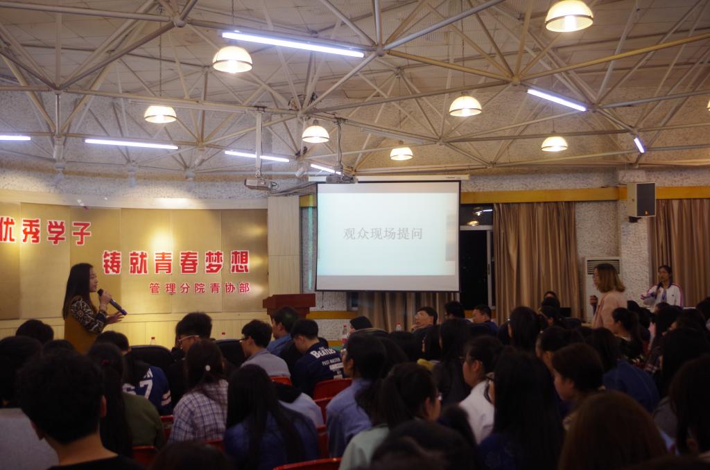 随后就是互动提问环节,面对来自同学们的各种问题,优秀学子们都耐心仔细的回答,讲述自己的理解和方法,并希望借此次活动能使在场学生对优秀学子们的经历有所了解,并学以致用,加以实践。