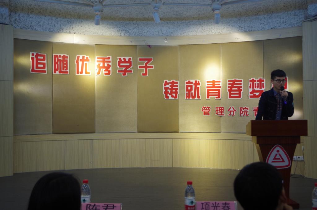 为了发挥身边优秀学子们的榜样作用,激励学生们的逐梦道路,4月10日晚,管理分院在多功能厅举办了以“追随优秀学子铸就青春梦想”为主题的优秀学子论坛。本次活动邀请了管理分院党总支书记项光春老师,辅导员陈君老师、陈力特老师,以及人力资源1402金珏岑、金融管理1401孙丹丹、涉外旅游1501林国辉、会计1405陈川和酒店管理1402薛立5位优秀学子。共约160名各班级学生代表参加。