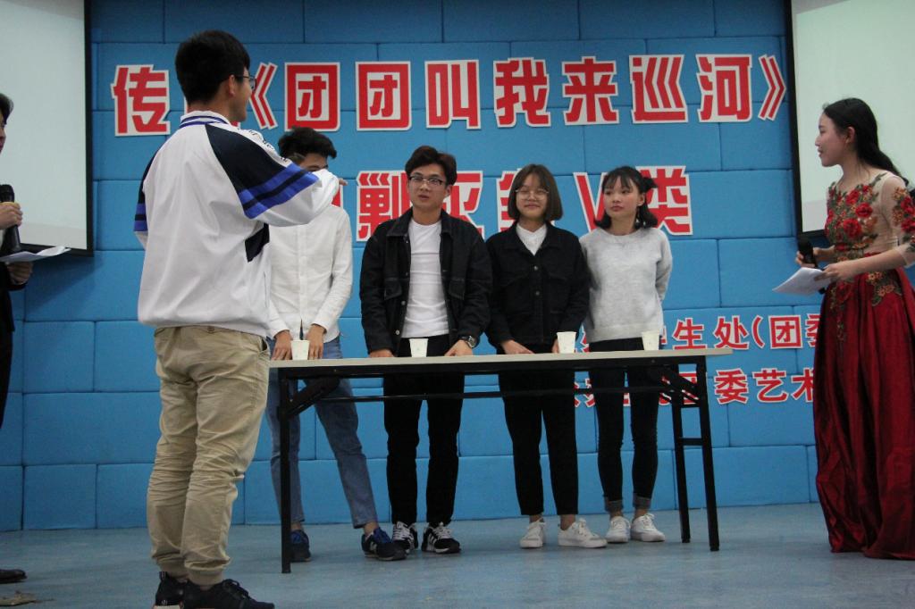 活动伊始,主持人邀请了五位观众上台玩游戏,游戏名字叫做“假如这个世界上只剩下五种水你会选择哪种”。后勤人员搬上了道具,共计五瓶水,分别从Ⅰ类水到Ⅴ类水,由台上的观众们自由选择,观众们选择好之后主持人一一讲解从Ⅰ类水到Ⅴ类水分别是哪五类水源,解析了什么是水污染,什么是垃圾河、黑河、臭河,然后引出问题:“五水共治”提出的背景是什么?治污水要抓什么?作为大学生的我们,对于灭劣Ⅴ类水能做些什么呢?“争当实践者,争当宣传者,争当监督者。”是我们大学生能做的,也是大家共同努力要去实现的。