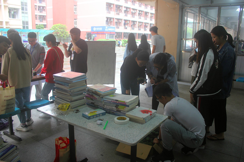 活动如火如荼地展开,大家踊跃地拿出自己不用的旧书籍、旧报纸、旧杂志等废旧纸制品,用来兑换一盆盆绿色肉植。每位校友捐出2公斤的书本后,就能从我院学生会工作人员那里领取一盆精美的绿色植物,这样低碳环保的公益活动吸引了大量校友前来参与,让学子广场变得热闹非凡。