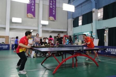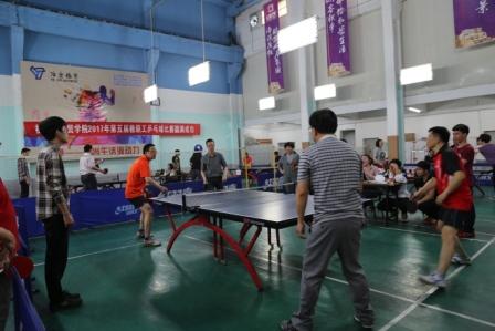 4月23日下午,由院工会主办的第五届教职工乒乓赛在冶金羽毛球馆如期举行。比赛设男、女单打和混合团体赛,共有9个分工会组队参赛。比赛在轻松愉快的气氛中开始,并随着争夺的加剧渐趋紧张激烈。场内队员奋勇拼搏,争取发挥出最佳水平;场外队员呐喊助威,不时为一个好球爆发出阵阵喝彩声。各分工会齐心协办,为打败对手研究战术、排兵布阵,充分展现了团队合作的精神。