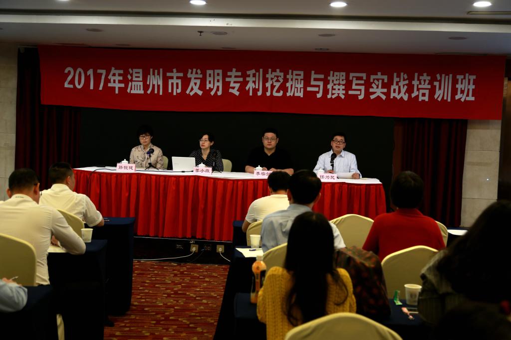 4月21-24日,由我院的温州市知识产权服务园承办的2017年温州市发明专利挖掘与撰写实战培训班在温州万融商务大酒店举行。本期为期四天的培训班由温州市科技局(知识产权局)主办,我院知识产权服务园及温州市知识产权协会共同承办,来自全市各县市区的各相关单位约170多人报名参加;其中包括企业70家100余人,高校科研院所8家近40人,知识产权专业服务机构15家25人,以及各县(市、区)科技局知识产权行政管理人员10人。学员按化学、机械等行业领域分成15组,以分小组形式进行实践性的培训学习和实践操作训练。国家知识产权局专利管理司资深审查员姜小薇、刘伟、李宗剑、孙悦健等四位专家负责授课并现场实践指导。