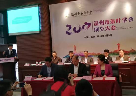 温州市茶叶学会是在温州市供销社业务主管下,由温州地区广大茶产业科学技术工作者、专家学者和相关科研院所资源结成的学术性、非营利性、地方性社会组织。据陈沐琼透露,未来学会将着力搭建茶事活动、茶文化交流、茶教育培训、茶产区交流合作、茶科技指导、茶信息、瓯窑瓯塑合作开发、禅茶道茶研究推广等八大平台,力争突破茶产业发展瓶颈。由浙江工贸职业技术学院等三方签约共建的温州茶叶跨界融合创新应用平台,将在茶文化和茶产业产学研相关的文化创意、旅游开发、学科建设、工业设计、品牌建设、供销人才培养等方面深度合作发挥重要作用。