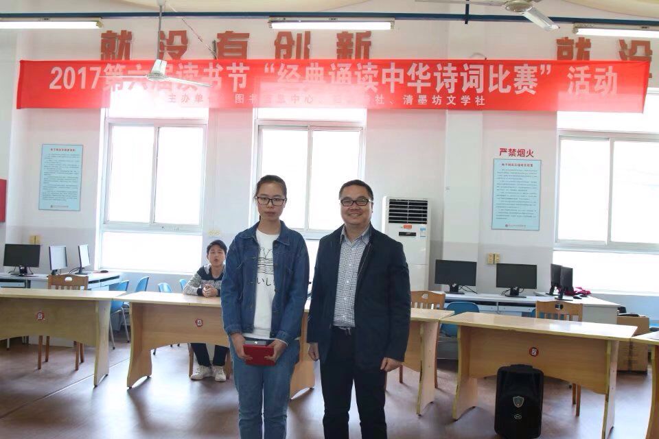 从全院海选到最终的复赛,决赛,历时一个多月,第六届读书节“经典诵读-中华诗词比赛”于2017年5月3日星期三下午在学院图书馆期刊阅览室圆满结束。
