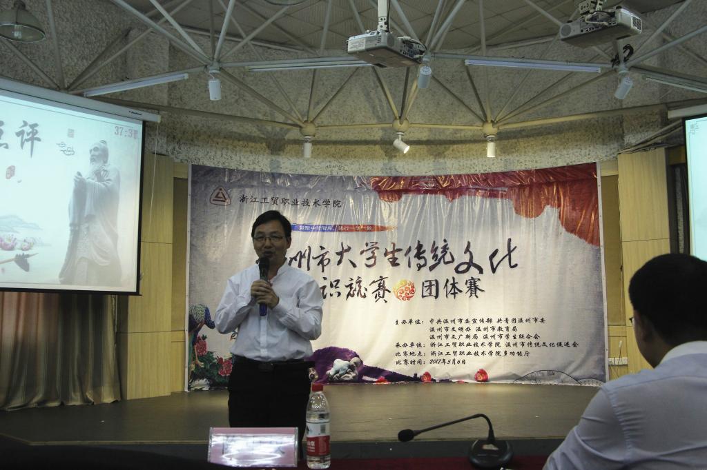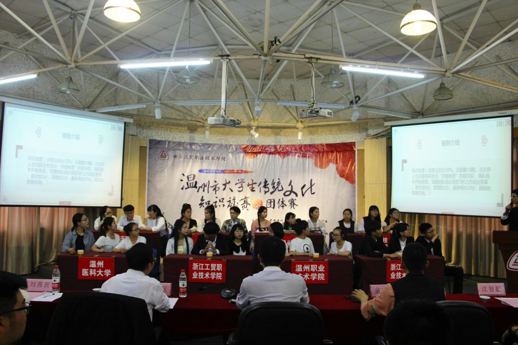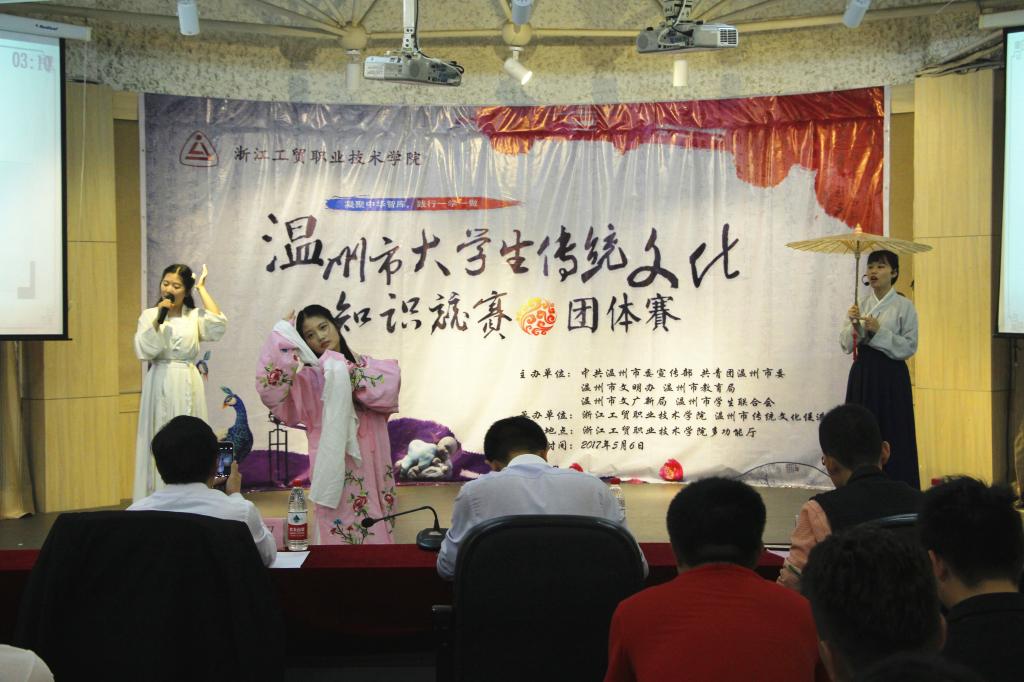 为深入贯彻落实教育部关于《完善中华优秀传统文化教育指导纲要》文件精神,弘扬中国传统文化,推动传统文化教育普及化,用实际行动践行“一学一做”,2017年5月6日,由中共温州市委宣传部、共青团温州市委、温州市文明办、温州市教育局、温州市文广新局、温州市学生联合会主办,浙江工贸职业技术学院和温州市传统文化促进会承办的温州市传统文化知识竞赛团体赛在我院顺利举行。