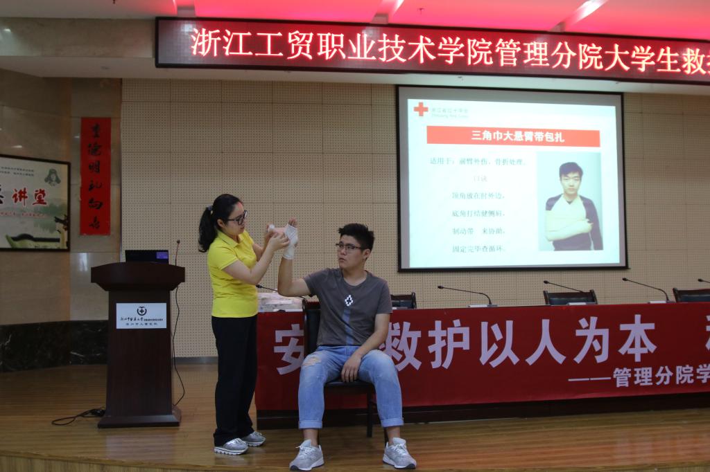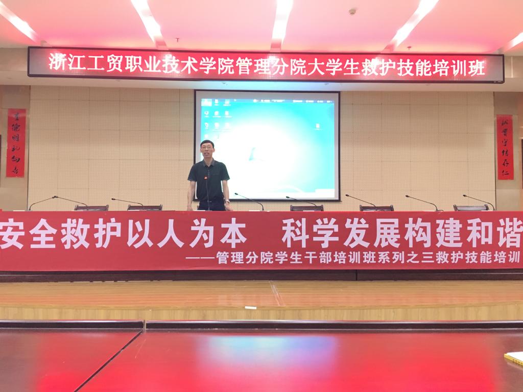 为继承和发扬“人道、博爱、奉献”的红十字会理念,加强大学生应急事件处理能力,让学生初步掌握自救互救知识,提高自救互救技能,2017年5月13、14日,管理分院在温州中西结合医院进行了“安全救护以人为本,科学发展构建和谐”的第三期团学干部培训,本期培训以急救救护为主题,由管理分院、温州中西结合医院和温州市鹿城区红十字会三方共同举办。约有管理分院大一、大二200名团学干部参加此次培训。