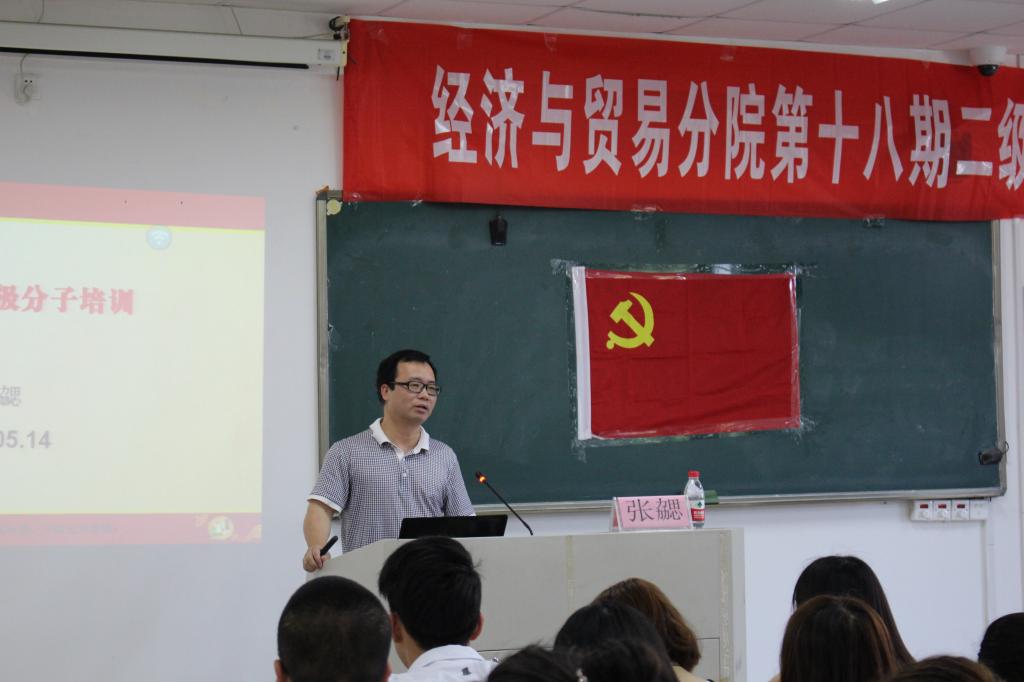 为了加强入党积极分子的培训工作,进一步提高入党积极分子的党的基础理论素养,5月14日上午,经贸分院举行第十八期二级业余党校培训,由经贸分院党总支书记张勰老师和党总支委员施星君老师主讲。