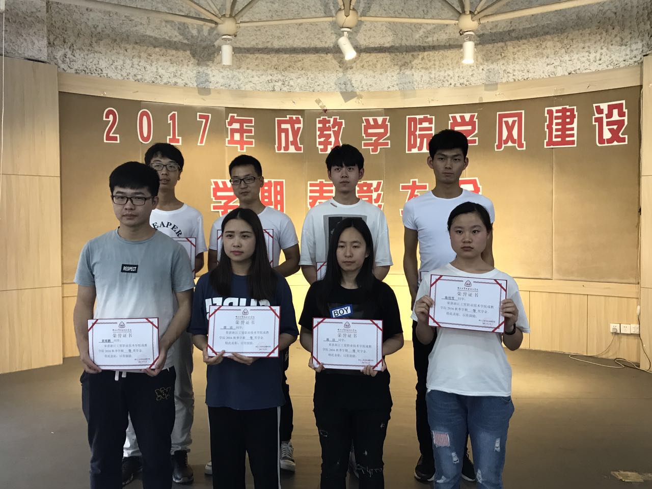 宣读完名单后,由出席本次大会的教务部主任杨鹏和辅导员老师为各名获奖同学颁发证书。并合影留念,每张照片上都有着同学们胜利的微笑。