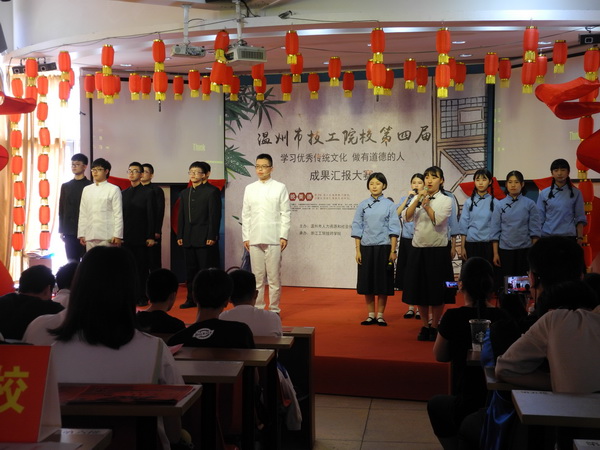 温州市技工院校“学习优秀传统文化,做有道德的人”成果汇报大赛至今开办了四届,已成为温州市技工院校的重点保留节目,且已深入各技工院校全体师生的人心了,受到业界广泛的称道和欢迎。我院历年来作为大赛的承办方,亦是为了加强中职院校整体的道德建设贡献力量,肩负起弘扬传统文化的重任,使传统文化的深蕴内涵和优秀美德注入每位学生的心灵,进而对每位学生产生积极健康的影响,不断秉承文化和道德素养的正能量。