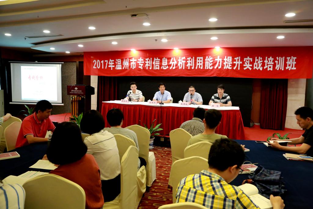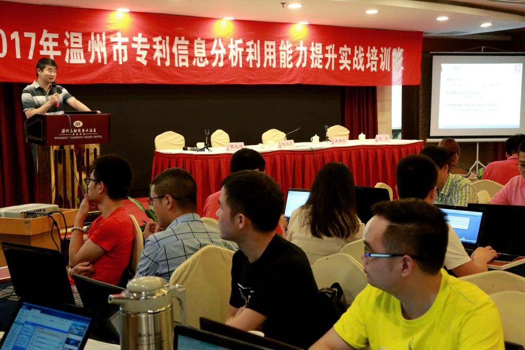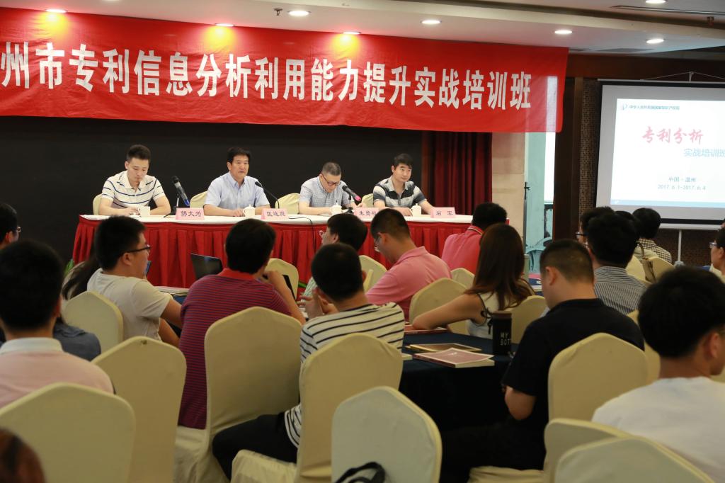 根据市科技局《2017年温州市知识产权人才培训计划》,由市科技局(知识产权局)主办,我院温州市知识产权服务园、温州市知识产权协会、知识产权学院等承办的2017年温州市专利信息分析利用能力提升实战培训班6月1日在温州万融商务大酒店举行了开班仪式,温州市科技局领导匡连庭、朱敏勇及国家知识产权局的授课专家,资深审查员郭大为、石军、董克、汪勇等出席了开班仪式;来自温州市各县(市、区)科技局、浙南产业集聚区科技局、瓯江口产业集聚区发改局、浙南科技城经发局专利行政管理人员、相关企业、包括我院在内的高等校院相关专业师生及科研机构中知识产权密切相关岗位人员等120余人报名参加培训。