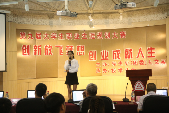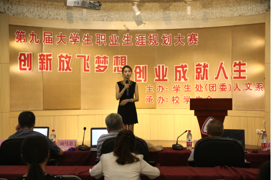 为培养大学生职业规划意识和创新创业意识,提高大学生的综合能力和素质,增强就业竞争力。6月13日,以“创新放飞梦想 创业成就人生”为主题的第九届大学生职业生涯规划大赛在我院多功能厅顺利举行。担任本次比赛的评委有区域文化中心主任王小明老师,团委副书记应马忠老师,创业学院李连弟老师,设计分院陈瑶老师和人文系高富春老师。