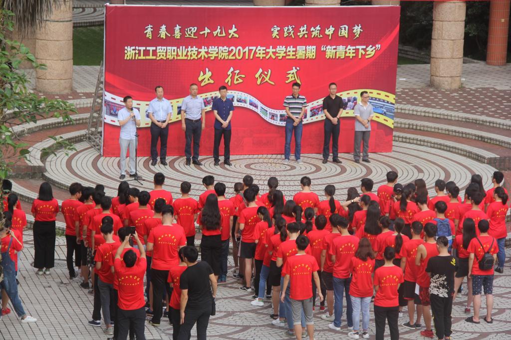 7月2日下午,以“青春喜迎十九大 实践共筑中国梦”为主题的大学生暑期“新青年下乡”出征仪式在一号楼广场举行。
