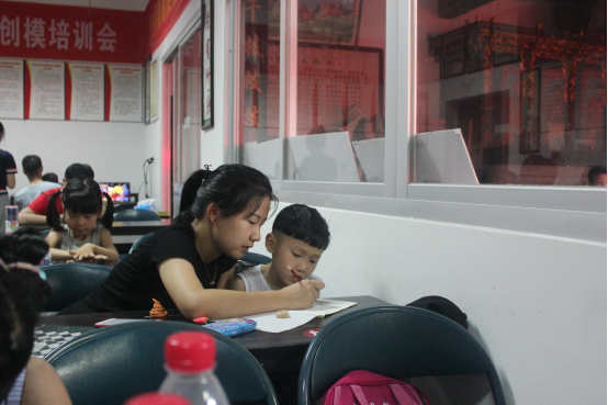 当天下午,志愿者们在文化大礼堂道德讲堂开展暑期辅导班,帮助上埠头村的小朋友们补习功课,巩固知识。