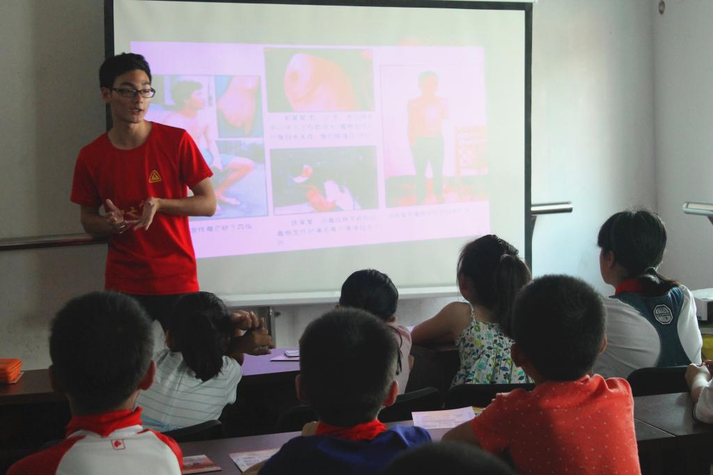本次仰义之行我们很幸运地与浙江工贸职业技术学院管理分院暑期社会实践队进行了无缝对接。在他们的帮助下,讲座所需的桌椅甚至投影仪都不用我们操心。讲座上,除了毒品本身的特点及危害,我们的讲师犀利的语言风格,面面俱到的讲述方式,也成功吸引了孩子们注意。此外,当讲师拿出仿真毒品模型时,更是将本次讲座推向了高潮,孩子们在一一目睹了毒品的真貌后,也表示绝对不会触碰毒品。