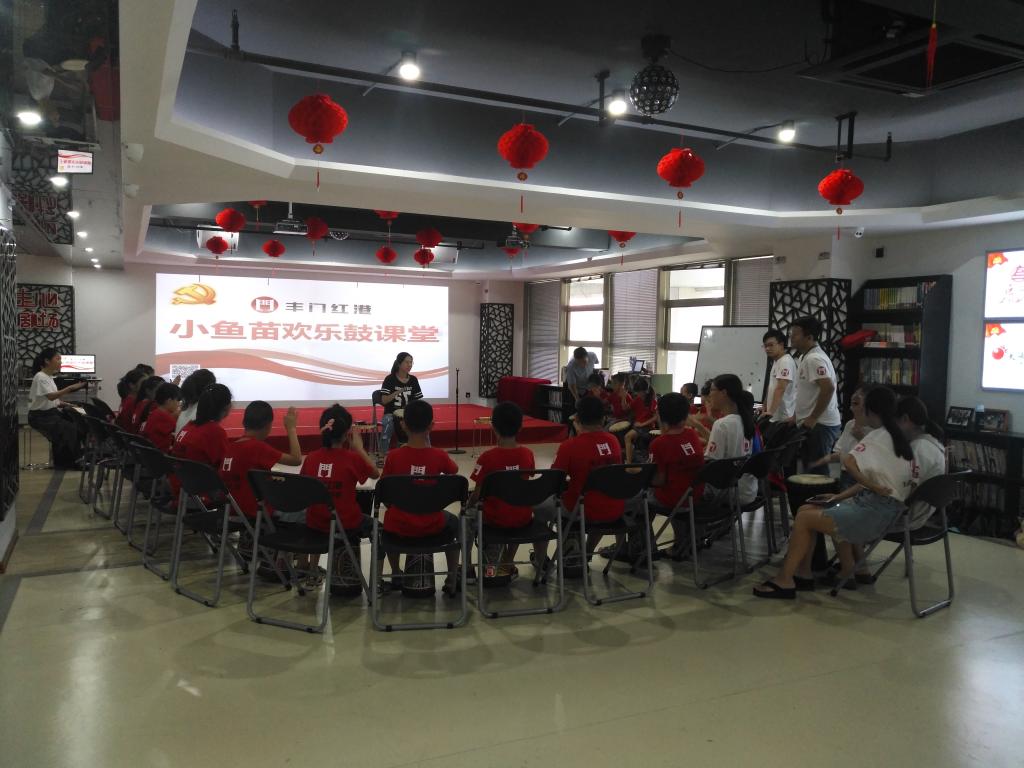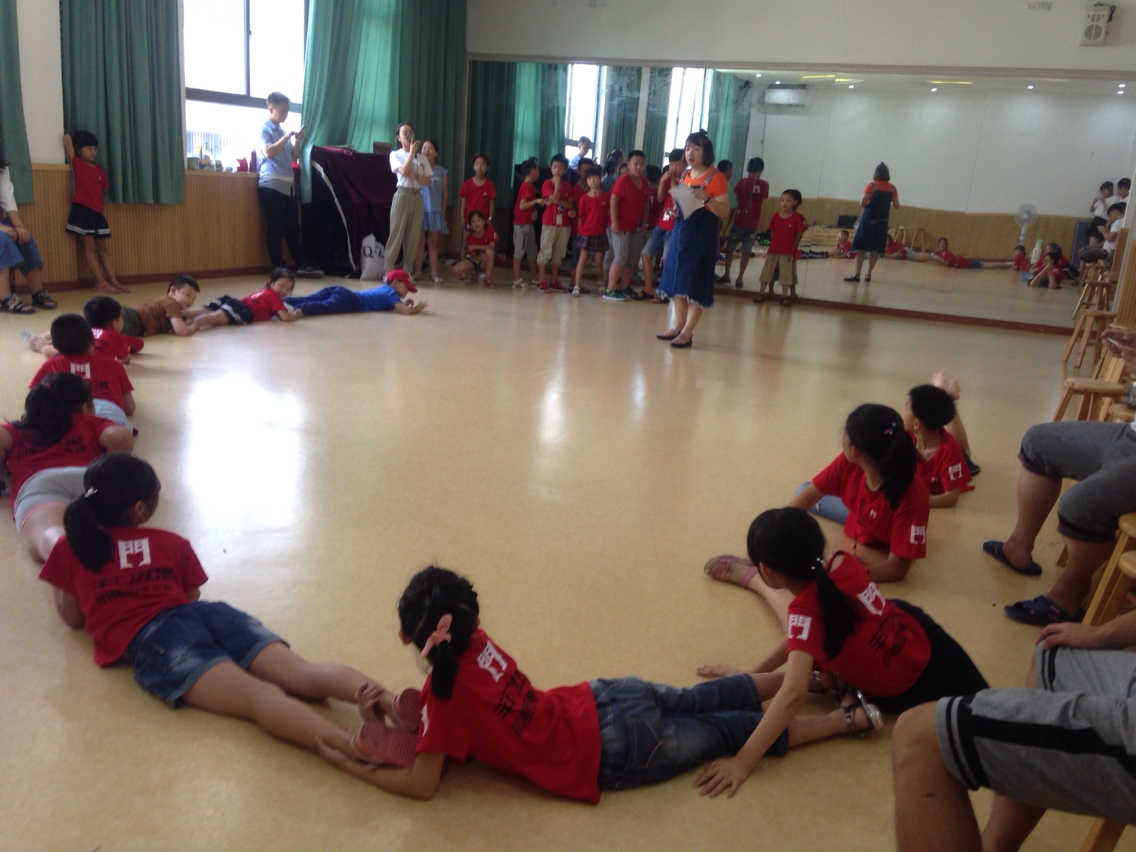 游戏过后,芒果老师开始讲《神奇的骨头》,故事精彩纷呈,小朋友们听得很入迷,一双双眼睛水灵灵地聚焦在老师身上。中午休息时,我们为小朋友们准备了凉席,不用像“大杂居”一般的休息了。下午,我们去丰门红港给小朋友们上课,我们的汤老师带来了一个乐器——欢乐鼓,小朋友们拿到鼓的那一刻,掩盖不住心中的好奇,杂声在一瞬间充斥着整个会场。经过老师的指导,小朋友们有规有矩地跟着,从开始的繁复冗杂到最后的小乐曲,每一个细节都看得出小朋友们的用心。鼓声欢声心声,50分钟的演奏也就落下了帷幕。
