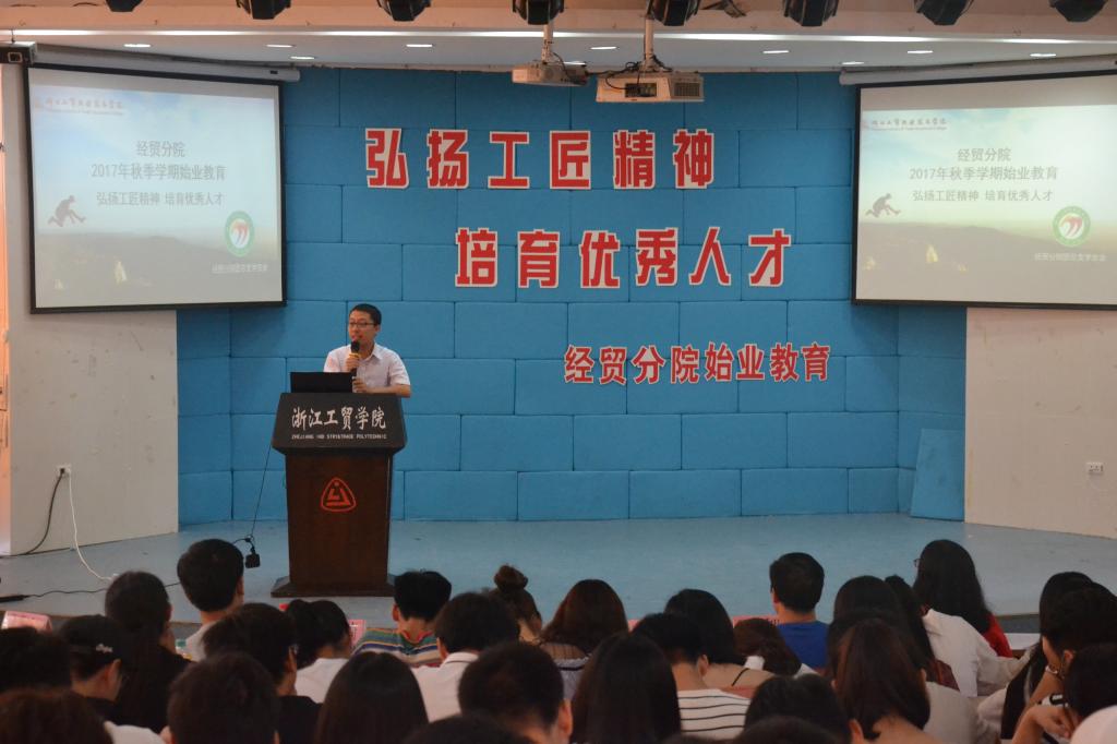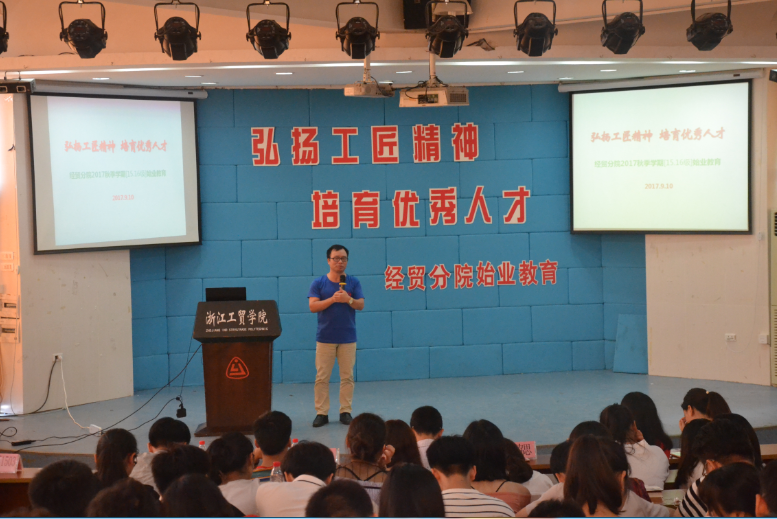 2017年9月10日上午,经贸分院在阶梯教室先后分两场召开15、16级始业教育大会,到场嘉宾有经贸分院党总支书记张勰老师、经贸分院院长助理施星君老师、经贸分院辅导员向政老师、周妍妍老师、郑雪琦老师、吴妮妮老师以及全体班主任。