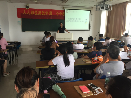 根据学院2017年秋季学期教职工专题培训要求,信息与传媒分院于9月8日下午13:30在6712教室开展全体教师学习讨论会。会议由分院副院长吴同喜主持,分院全体教师参加了此次会议。